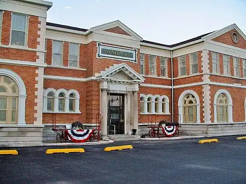 The railroad first reached Decatur in 1854, when the Great Western Railroad built a line through the city. Decatur built Union Station, its first railway station, in 1856 to serve this line. By 1901, the Great Western Railroad had consolidated into the Wabash Railroad, and the old Union Station had fallen into disrepair. The railroad built the present station that year at a cost of $70,000; railroad superintendent H. L. Magee considered the new building one of the most impressive on the line. The Wabash Railroad was the only east-west railroad through Decatur, and its passenger and freight services in the city were both busy. 72 daily passenger trains brought travelers to and from the city at the line's peak in 1907, and $350,000 to $400,000 worth of freight was shipped through the station yearly. The railroad was also Decatur's largest employer; as Decatur was a major hub, it kept division offices and a large dispatcher force there as well as employing railroad operators from the city. Passenger service from the station began to decline in the 1920s, though the railroad (which later merged into the Norfolk & Western) continued service to Decatur until the formation of Amtrak in 1971.[5] Amtrak attempted to restart service with the Illini in 1981, but the service only lasted until 1983 and the station closed for good.[6] The station was added to the National Register of Historic Places on February 4, 1994; it is the only remaining historic railroad station in Decatur.[7]
