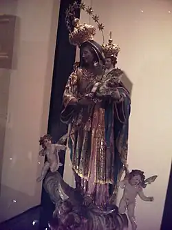 It was originally housed in the Archepiscopal Palace but due to an initiative by cardinal-archbishop Crescenzio Sepe it re-opened in the rooms behind the chancel of Santa Donna Regina Nuova and on a new mezzanine floor above the side chapels of its nave on 23 October 2007.[3] The rooms above the side chapels are organised thematically, with a room each for the Passion of Christ, the Seven Sacraments, Martyrdom, the Life of Priests, Monks and Mendicants and the Seven Works of Pity. Other rooms house objets-d'art, such as two bronzes of St Candida of Naples and St Maximus by Giovan Domenico Vinaccia from Naples Cathedral, reliquaries, vestments and sculptures in wood and stone.