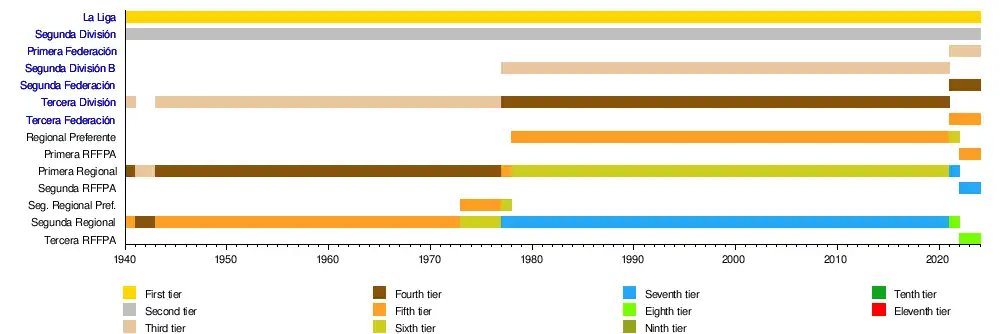 • Primera Asturfútbol, formerly Regional Preferente de Asturias and Primera RFFPA (Level 6 of the Spanish football pyramid)
