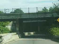 The alignment of Dowd Avenue originates as the name of Humboldt Avenue and the designation of New Jersey Route 164. Route 164 was first designated just after the 1953 state highway renumbering, as the highway was not listed as a creation of the renumbering from its original system.[3] Although the maps produced by Rand McNally never showed Route 164 after 1955, the highway was in logs produced by the state of New Jersey past 1957.[4] Route 164 was decommissioned by the New Jersey State Highway Department by the 1969 milepost log.[5] In 1982, the new freeway to Newark Airport (New Jersey Route 81), which parallels the former alignment of Route 164, opened.[6]