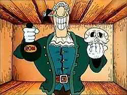 According to Russia Beyond, Dr. Livesey is presented in the cartoon as a "really funny guy" as he's always shown to laugh, even while examining his patients with a wide grin (regardless of their health condition).[5] He also defeats his opponents with playful ease as Livesey is capable of sword-fighting and shooting with a flintlock. Elegant and always dressed in a white wig, Dr. Livesey plays a key role in obtaining Captain Flint's treasure and helps Jim Hawkins escape from the vengeful pirates led by Long John Silver.[6]