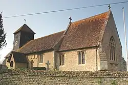 The Church of England parish church of Saint Leonard and Saint Catherine existed by 1146, when it was a chapel of the peculiar of Dorchester Abbey.[2] The Norman doorways in the north and south walls date from this time.[2] In the 13th century a transeptal chapel was added on the north side and new windows were inserted in the nave,[2] all in the Early English Gothic style. The bell tower is timber, which is unusual for Oxfordshire,[3] (though there is a similar timber tower with a pyramid roof at Berrick Salome).[4] The oldest bell was originally cast in 1470,[5] which could also be the date that the tower was built. In the 16th century two of the nave windows were enlarged in the Perpendicular Gothic style.[6]