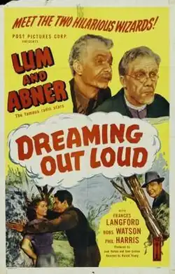 Dreaming Out Loud is a 1940 American film based on the radio series Lum and Abner, directed by Harold Young starring Chester Lauck and Norris Goff. It is also known as Money Isn't Everything.