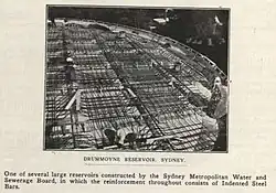 9. ^ "DRUMMOYNE RESERVOIR, NEAR SYDNEY". Construction and Real Estate Journal. Vol. XLX, no. 1571. New South Wales, Australia. 11 May 1938. p. 10. Retrieved 25 May 2018 – via National Library of Australia.