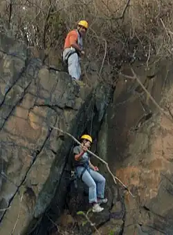 Friends of East Rock, New Haven Graffiti Clean up. The experienced rock climbers of the group rappelled off the rock to get the harder to reach places.
