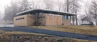 In 1961, the library was relocated to the current building which was designed by John C. Ehrlich. Its design follows New Formalist architecture - a small, one-story building. The library's new building was built from the donation given by Walter Burton Ford, a philanthropist and retired mathematics professor at the University of Michigan, in memory of his late wife and educator Edith Banker Ford, who died in 1959.[3]