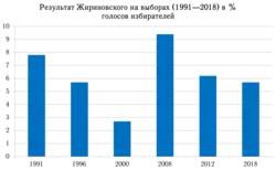 Vladimir Zhirinovsky's results in the presidential elections from 1991 to 2018