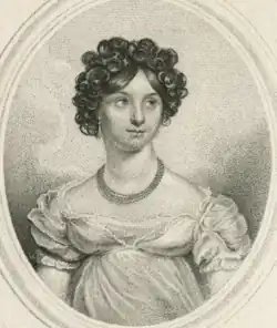 Elizabeth Brunton was born at Norwich on 21 January 1799 to a theatrical family.[note 1] Her grandfather, John Brunton, acted at Covent Garden Theatre in 1774 and was later a theatre manager; her father, also John Brunton (1775–1849), went on the stage in 1795, and later appeared at Covent Garden in 1800 as Frederick in Louisa's Vows. He also managed theatres, including those in Brighton, Birmingham, Exeter and King's Lynn.[1] Her mother was the actress Anna Ross, sister to Fanny Robertson, and Yates had at least three siblings.[2][3] Elizabeth's aunt, Anne Brunton, was an actress who also appeared at Covent Garden. Another aunt, Louisa Brunton, also an actress,[2] later married Major-General William Craven, 1st Earl of Craven.[4]
