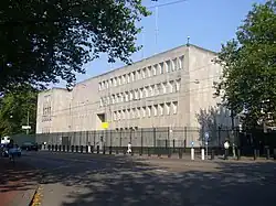The current American embassy building in Wassenaar opened on January 29, 2018.[2] It replaced the former embassy building at the Lange Voorhout 102 in The Hague,[3] which was opened on July 4, 1959;[4] it housed the U.S. diplomatic mission to the Netherlands for nearly 60 years. This building in The Hague's city center was designed by architect Marcel Breuer and was designated a national monument in 2017.[5]