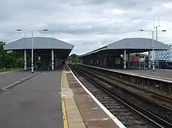 Epsom railway station serves the town of Epsom in Surrey, England. It is located off Waterloo Road and is less than two minutes' walk from the town's high street. It is 14 miles 18 chains (22.9 km) down the line from London Waterloo.