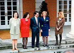 Aguirre in May 1996 next to the PM José María Aznar and fellow ministers Loyola de Palacio, Margarita Mariscal de Gante and Isabel Tocino.
