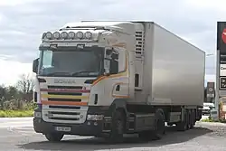 The lorry cab, a Scania R620, was registered in Bulgaria in 2017 in the name of a company owned by an Irish citizen, but had not returned there since, according to the Bulgarian foreign ministry.[1][2] The refrigerated trailer was leased on 15 October from a rental company in County Monaghan, Republic of Ireland.[3] Refrigerated trailers can be kept airtight and frozen to preserve perishables, which could lead to an occupant dying of suffocation or hypothermia should they become trapped inside.[1][4]