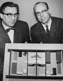 The Esso Motorby design presented by architect Lennart Billgren and Svenska Esso director Arne Gustafsson in 1961