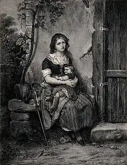 27. ^ "An anxious mother checking on her sleeping baby. Coloured lithograph by E. de Barescut after Lebot". Wellcome Library Catalogue. Retrieved 2021-01-27.