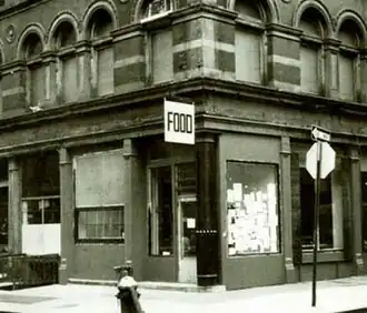 FOOD was an artist-run restaurant in SoHo, Manhattan, New York. FOOD was founded by artists Carol Goodden, Tina Girouard and Gordon Matta-Clark. FOOD was considered one of the first important restaurants in SoHo.[1] Other individuals who were involved with FOOD included Suzanne Harris and Rachel Lew.[2] FOOD was a place where artists in SoHo, especially those who were later involved in Avalanche magazine and the Anarchitecture group, could meet and enjoy food together.[2] FOOD was considered to be both a business and an artistic "intervention in an urban setting."[2] It has also been called a "landmark that still resonates in the history and mythology of SoHo in the 1970s."[3]