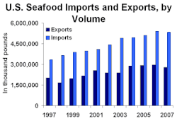 Graph of U.S. seafood imports and exports 1997–2007.[10]