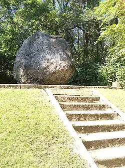 The Spanish and Native force travelled via the Illinois River and Kankakee River to modern Dunns Bridge, Indiana. There they turned northeast and marched overland to Fort St. Joseph.[6] Before the Spanish and their allies attacked the fort, they promised the Potawatomi half the bounty if they would remain neutral.[7] Captain Pouré took Fort St. Joseph by surprise on 12 February 1781 by racing across the frozen river and taking the fort before the defenders, who consisted solely of a Canadien trader named Duquier and several of his employees, could go to arms.[6]