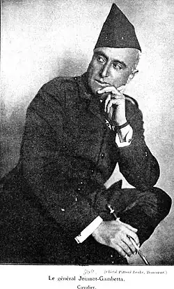 By the start of the First World War in 1914 Jouinot-Gambetta was a colonel.[1] He was appointed a commander of the Legion of Honour on 30 January 1915.[4]: 1  In 1917 Jouinot-Gambetta was appointed to command a brigade of three regiments of Spahis and Chasseurs d'Afrique with the Armée d'Orient on the Macedonian front.[1][7]