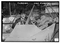 Frank John Bersbach Sr. and Harold Fowler McCormick in Logan Archbold Vilas's flying boat in 1913