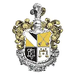 Originally, the colours of the corporation Fraternitas Lataviensis used in regalia (color distinguishing signs) were black, blue and gold. This colour scheme was used until 1928, when it was changed to black, white, and gold due to concerns of confusion raised by other corporations with similar colour schemes. There are two different explanations of the meaning of these colours. According to the coat of arms of Fraternitas Lataviensis and the motto - "Pro patria, iustitia, honore!" ("For the fatherland, justice, honor!"): Black represents the fatherland; white, justice; and gold, honor. According to the flag song "Friends, brothers, give your hands": black represents certainty; white, the truth; gold, honesty and man's virtue. Other distinctive signs include the flag, coat of arms, colour shield, colour ribbons, sash, insignia, headgear (deckel), and colour rapier.