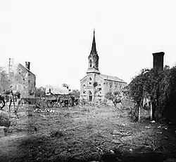 Fredericksburg, Virginia. View on Princess Anne Street showing Baptist church and 6th Corps hospital