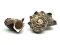 The first gastropods were exclusively marine, with the earliest known representatives appearing in the Late Cambrian (e.g., Chippewaella, Strepsodiscus).[38] However, their only definitive gastropod feature is a coiled shell, which raises the possibility that they may belong to the stem lineage of gastropods, or might not be gastropods at all.[39] Early Cambrian species such as Helcionella, Barskovia, and Scenella are no longer considered gastropods, and the small coiled Aldanella from the same period is probably not even a mollusk.