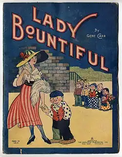 His comic strip Lady Bountiful, debuted in Heart's newspapers in 1902 as a Sunday-comics filler, and the following year jumped to publisher Joseph Pulitzer's The New York World, appearing as the cover feature of May 3, 1903.[2] The strip's star, notes comics scholar Don Markstein "has been cited by many comics historians and commentators as the very first" female protagonist of a comic strip, cautioning, "Maybe she is. It's certainly difficult to think of any that were in print before her 1902 debut."[2]