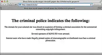20. ^ Emil Protalinski (2011-06-10). "Police take down Kino.to in massive anti-piracy operation". TechSpot. Retrieved 2011-12-23.