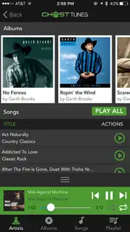 Garth Brooks' catalogue shown on GhostTunes for iOS