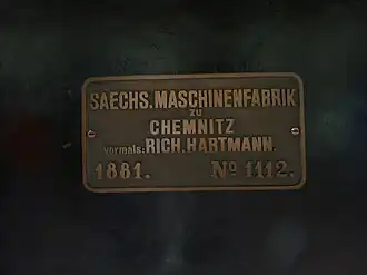 | Sächsische Maschinenfabrik Steam Locomotive Nº 1112 constructed in 1881. | |