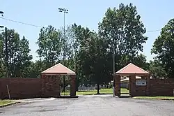 The show buildings and central arena are set in a 7-acre planned and maintained park-like setting. Plantings include a large number of trees, eucalypts, elms and pines planted in 1897 in preparation for Queen Victoria's Jubilee celebrations. A large number of trees were donated by the Department for Mines and Agriculture for planting at the showground in 1898. These early plantings formed the skeleton of the landscape grounds with were maintained and added to over the years. In 1910 a local man, George Black donated 20 pine trees which were planted along the George Street boundary of the ground and can be clearly seen in early showground photographs.[1]