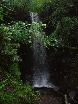 In the braes, is found the Robertson Country Park. The park is an upland area covering approximately 480 acres. It is mainly moorland but there is some woodland areas and hill farming areas. There is also woodland walk paths, streams and waterfalls, picnic areas, birdwatching sites and play equipment for children. Views of Paisley and the lower Clyde Valley to Ben Lomond are offered from the park, including from Robertson car park.[1] The area is situated on the edge of the Clyde plateau lavas; a feature is Gleniffer gorge situated along the Tannahill walkway. It reaches approximately 50 feet deep in places and is eroded by the Gleniffer burn. Another feature is the Craigielinn waterfall in Glen park, where icicles are sometimes seen hanging in winter.[2]