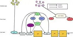 The glnALG operon is regulated by an intricate network of repressors and activators. Along with NRI and NRII, there are gene products of glnF and glnD which play a key role in this network. The expression of the glnALG operon is regulated by the NRI at three promoters: glnAp1, glnAp2 and glnLp. The initiation of transcription at glnAp1 is stimulated exclusively under carbon starvation conditions and stationary phase during which cAMP accumulates in high concentration in the cell. The binding of cAMP to the catabolite activator protein (CAP) causes CAP to bind to a specific DNA site in glnAp1, and glnAp1 is repressed by NRI. Initiation of transcription at glnAp2 requires the activated form of NRI, i.e. NRI–P(phosphorylated NRI), as well as the glnF gene product, σ54,[3] and it is regulated by NRII. NRII in the presence of ATP, catalyzes the transfer of ϒ-phosphate of ATP to NRI. In the presence of PII, which is encoded by glnB, NRII catalyzes the dephosphorylation of NRI–P.