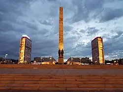 - ^ Including 2 figures at the stele and 6 characters of the Blockade group, there are 34 of them in all compositions of the memorial.
