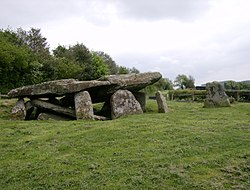 Arthur's Stone, Herefordshire,[2] located just outside the village of Dorstone, is a chamber tomb from the Neolithic Period, and dates from some time between 3700 and 2700 BC. Arthur's Stone is Herefordshire's oldest man-made structure.