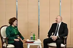 A few days before her inauguration, Siljanovska spoke out in favor of revision of the Good Neighborhood Agreement with Bulgaria from 2017 and against the inclusion of the Bulgarians in the country's constitution, which is a condition without which North Macedonia cannot become a member of the EU.[10] On this occasion, the Bulgarian acting Prime Minister Dimitar Glavchev stated that Bulgaria will not make any more compromises with North Macedonia.[11] President Rumen Radev answered that it is necessary to change the Macedonian constitution and to respect the rights of the Bulgarians, as well as to stop the hate speech against Bulgaria there.[12]