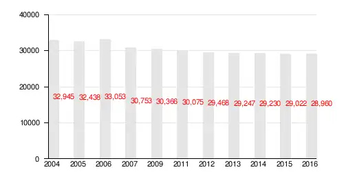 According to the Central Statistical Office data, the district's area is 5.85 square kilometres (2.26 square miles) and 28 960 people inhabit Grzegórzki.[1]