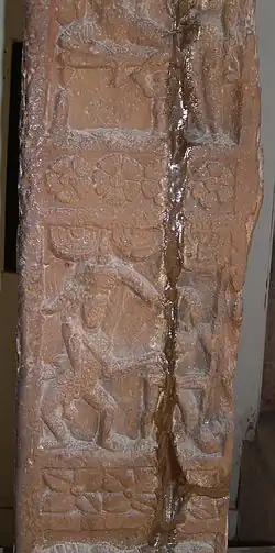 Detail of the relief carving on the Hāsalpur hero-stone. Archaeological Museum, Gwalior