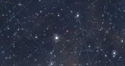 HD 184010 is a single evolved star in the constellation of Vulpecula. Its surface temperature is 4,987±10 K. HD 184010 has an orange/red hue and is visible to the naked eye with an apparent visual magnitude of 5.89. Based upon parallax measurements, it is located 200 light-years in distance from the Sun. The object is drifting further away from the Sun with a radial velocity of +5.73±0.12 km/s.[2]