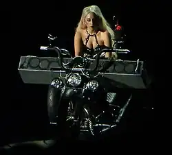The song was also included in the setlist of her Born This Way Ball tour (2012–2013), where she played the song on a keyboard that was installed on a motorbike.[50] To Kwaak Je-yup of The Korea Times was positive about the performance of the song during the tour saying that, "The highlight of the night was her first slow jam 'Hair,' which she introduced as her favorite track on the 'Born This Way' album. (...) She flubbed her line once and admitted it right away — 'I'm getting too excited (that) I forgot my lines,' she said — but the moment made the experience personal."[51] On the second night of Gaga's show in the Philippines, she addressed the protests by Christian groups against her performances in the country, directly before performing "Hair". While playing the piano she stated that she is aware of the issues around her image and music, she emphasized that she respects all kinds of religion, people and culture – including Filipino culture.[52] She also said that she respects that everyone is entitled to their own opinion, but stressed "What I don’t respect is homophobia and hatred…I reject intolerance to the gay community."[52] This drew cheers from the audience. She went on to say that she is aware some are using her name to spread hatred but intended to counter this by continuing to spread "positivity" in her own way.[52]