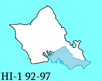East Honolulu, East Kapolei, 'Ewa Beach, 'Ewa Gentry, 'Ewa Villages, Hālawa, Hickam Housing, Honolulu, Iroquois Point, Kalaeloa (part; also 2nd), Mililani Mauka, Ocean Pointe, Pearl City, Waikāne, Waikele, Waimalu, Waipahu, Waipi'o, Waipi'o Acres, West Loch Estate