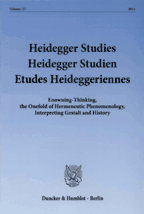 Heidegger Studies is an annual peer-reviewed academic journal covering the thought of Martin Heidegger published by Duncker & Humblot. It was established in 1985 and publishes contributions in English, German, and French. The editors-in-chief are Parvis Emad, Friedrich-Wilhelm von Herrmann, Pascal David, Paola-Ludovika Coriando, and Ingeborg Schüßler. All issues are available online from the Philosophy Documentation Center.