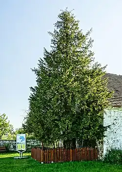 The village contains Poland's oldest tree – a 1260-year-old yew, which is listed as a natural monument.