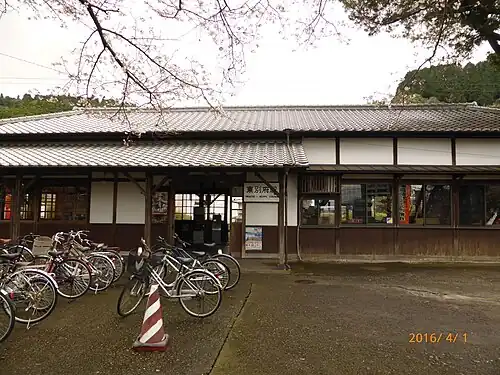 - ^ "東別府駅本屋" [Higashi-Beppu Station wooden station building] (PDF). Beppu City official website. Retrieved 1 May 2018.