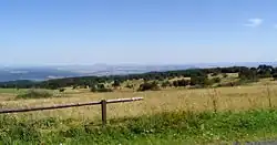 The highest point of the High Rhön Road is about 840 metres above sea level at a point east of the Heidelstein and the Stirnberg. The route runs east of the main crest of the High Rhön.
