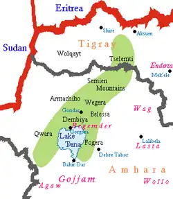 Jewish Abyssinians (once) controlled the district of Semien. They are called, in their own language, Falasa, because they chant the praise of the One God and have faith in none other. They have no Prophet and no saint. For forty years the people of Bahr Amba had enslaved them and put them to work as servants. They tilled the fields for them. After the imam had won the victory over the patrician Sa'ul, all the Falasa came from deep valleys and even from mountain caves – because they did not dwell in the lowlands, but in the mountains and in caves. They said to the imam "For forty years there has been hatred between us and the people of Bahr Amba. Let us kill them now, those who are left. And let us occupy their strongholds now that you have conquered them. We will be sufficient to do this to them. So, remain in your camp, and what we will do to them will astonish you."[9]