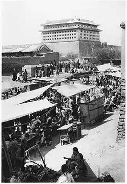 For centuries, the Saturn Peach Festival was celebrated with a temple fair at the Queen Mother's Saturn Peach Palace in Huashi, near the Southeast Corner Tower.[2] Though the temple was destroyed in the 1950s, the festival continues to be held annually in the nearby Ming City Wall Relics Park. Above: The festival during the late Qing dynasty.
