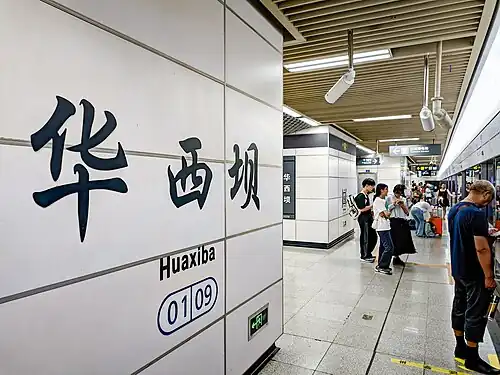Huaxiba (Chinese: 华西坝) is a station on Line 1 of the Chengdu Metro in China.[1][2] It is located near the Huaxi Campus of Sichuan University.