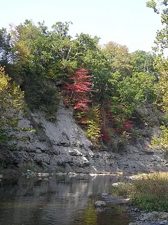 The West Branch is 54.5 miles (87.7 km) long.[1] It rises about 4 miles (6.4 km) south of Greenwich and four miles east of Shiloh, near the intersection of Gilger Road and Noble Road in northern Richland County's Blooming Grove Township. This is within a few miles of the headwaters of both the southwest branch of the Vermilion River (which also flows north to Lake Erie) and Shipp Creek, which is part of the Ohio River watershed via the Black Fork, Mohican, Walhonding, and Muskingum rivers. The West Branch of the Huron flows north and west from Blooming Grove Township through Huron County's Ripley Township, then back into Richland County's Cass Township and into Plymouth. It is here where the river bends north to flow across the Richland/Huron county line into Huron County's New Haven Township and into New Haven. It passes to the east of Willard, although other tributaries rise north of Willard. Still in Huron County, the West Branch continues north through Greenfield Township, Peru Township, and Ridgefield Township. The West Branch continues north into Monroeville and through the balance of Ridgefield Township. Next, the river crosses from Huron County into Erie County and then bends in an easterly direction through southern Oxford Township before reaching the confluence with the East Branch in the Milan State Wildlife Area.