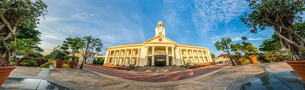 The 31-metre tall clock tower of the school is a national monument. It is the only school in Singapore to have a national monument in its campus.[34] It is built in the neoclassical architectural style. It was built in 1925 by Swan & Maclaren and was funded by donations of the Chinese community. The clock tower was gazetted as a national monument in 1999.[35] The classrooms in the building which holds the clock tower is used for special programmes.[33]